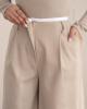 سیب فاق بلند آن ناحیه شکم را جمع‌تر نمایش می‌دهد. حجم شلوار توجه را از قسمت میانی بدن دور می‌کند.