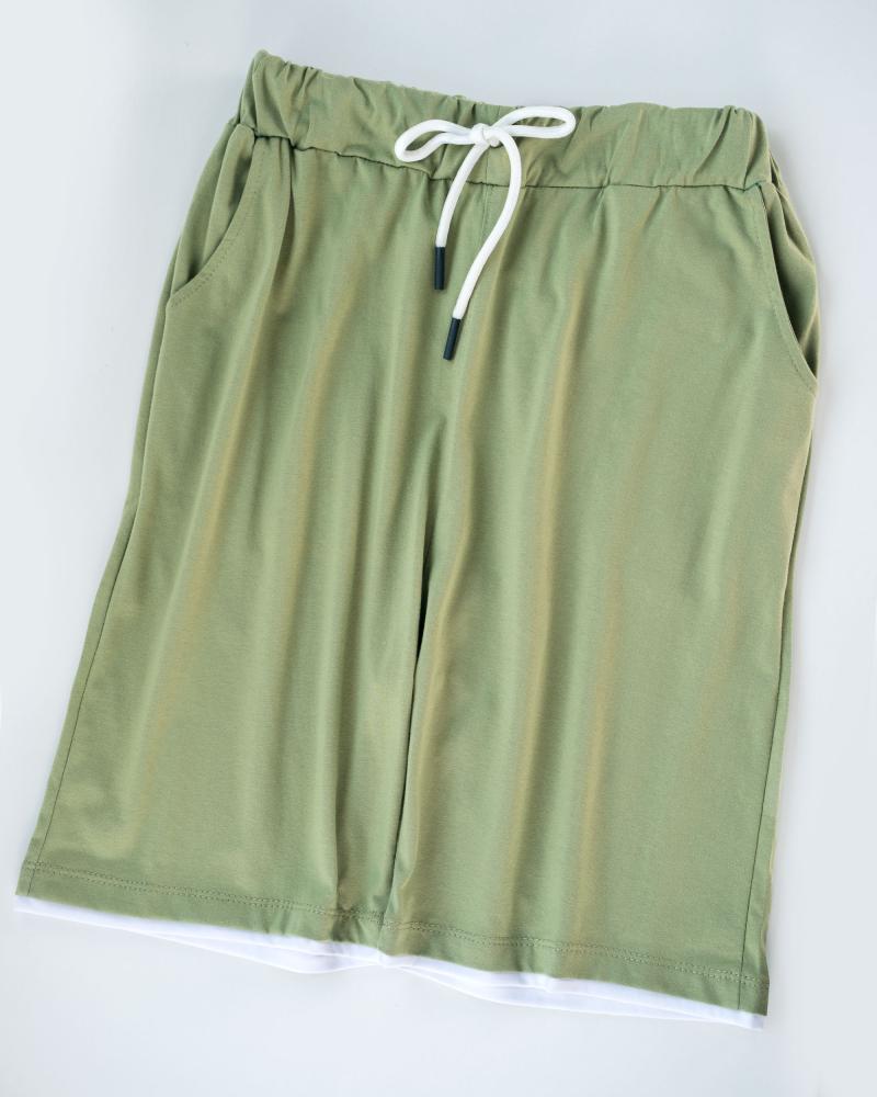 | سایز 2XL | دور کمر : در حالت عادی 68 سانتی متر با کشیدن 96 سانتی متر دور باسن : حدودا 114 سانتی متر دور ران : 62 سانتی متر قد فاق : 35 سانتی متر دمپا : 26 سانتی متر قد شلوارک : حدودا 55 سانتی متر |