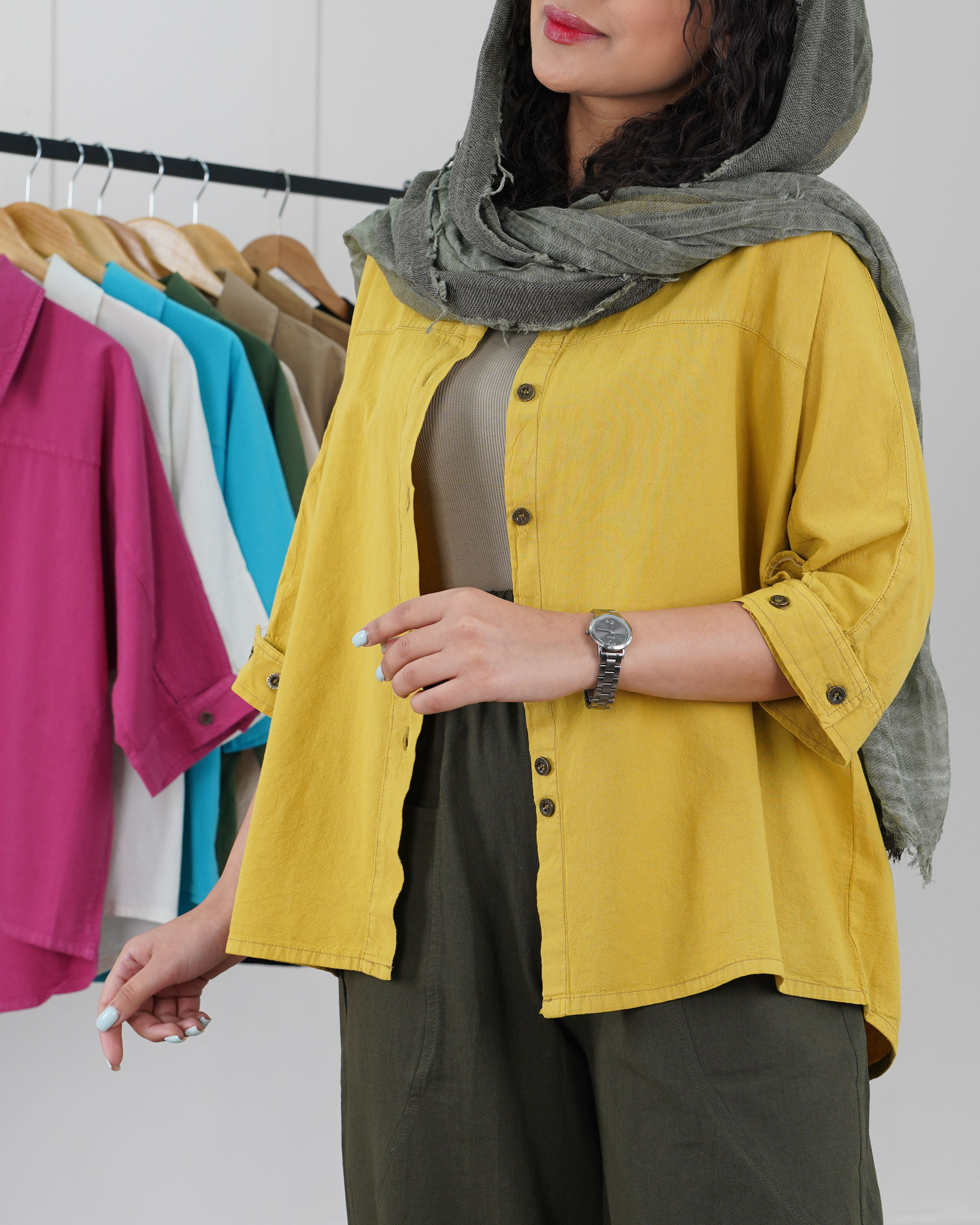 | تک سایز | مناسب تا دور سینه 115 سانتی متر دور باسن : حدودا 124 سانتی متر دور مچ : 32 سانتی متر آستین : از کنار یقه حدودا 46 سانتی متر قد جلو لباس : حدودا 60 سانتی متر قد پشت لباس : حدودا 65 سانتی متر |