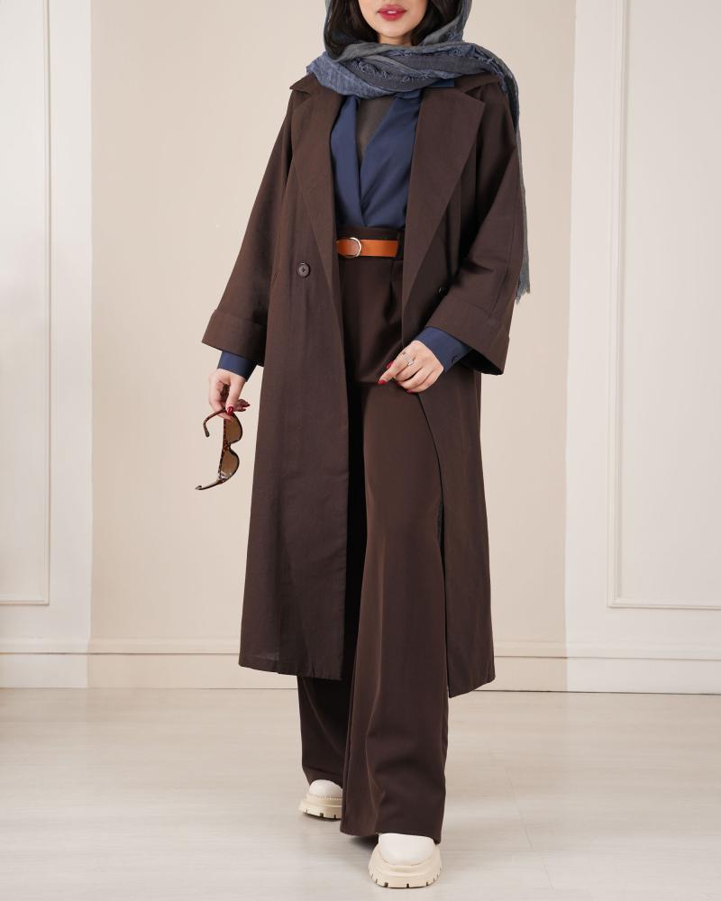 تک سایز | دور سینه : حدودا 112 سانتی متر دور باسن : حدودا 120 سانتی متر دور بازو : 40 سانتی متر آستین : از کنار یقه حدودا 64 سانتی متر قد لباس :حدودا 114 سانتی متر |