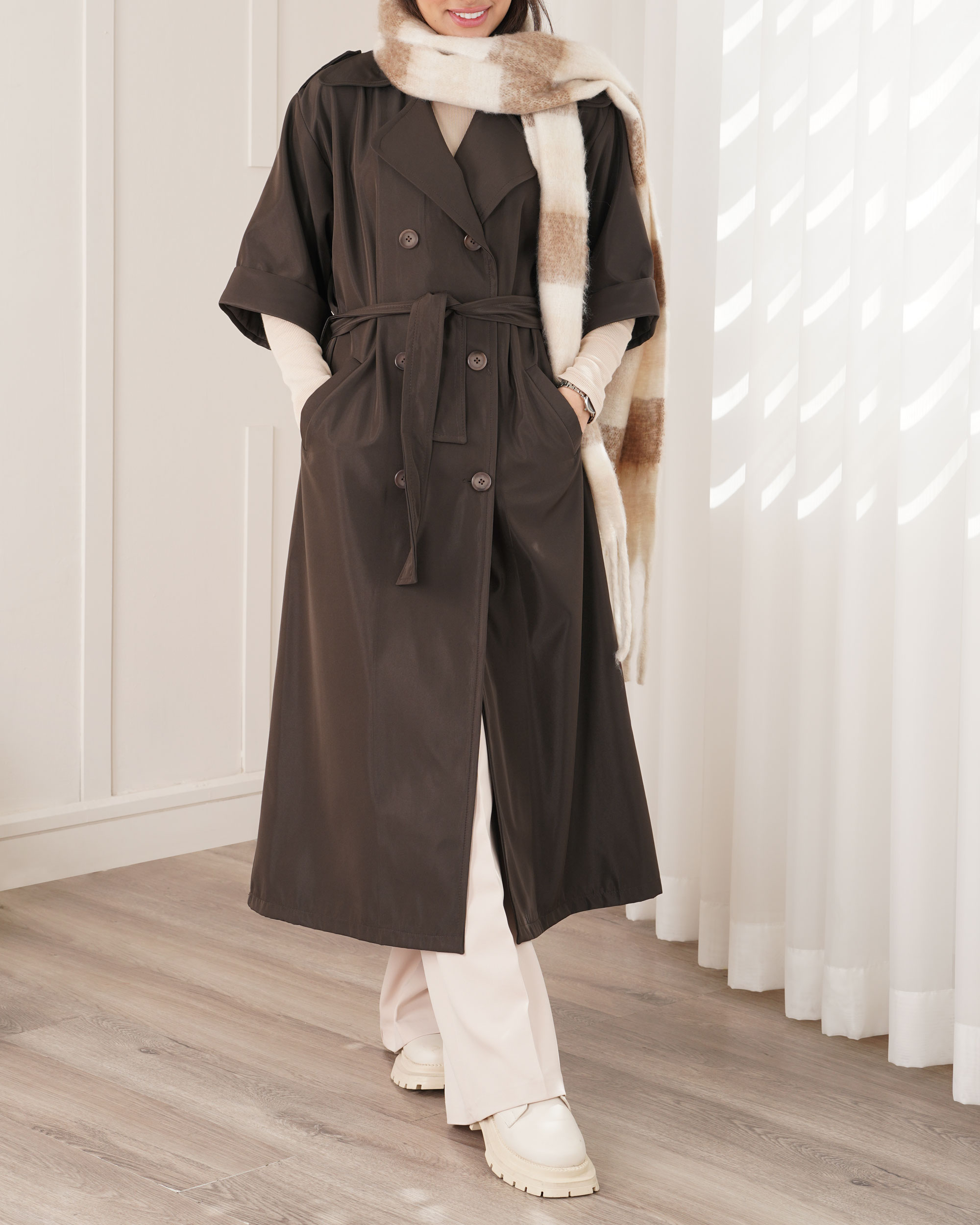 تک سایز | دور سینه : حدودا 112 سانتی متر دور باسن : حدودا 116 سانتی متر دور بازو : 42 سانتی متر آستین : از کنار یقه حدودا 48 سانتی متر قد لباس : حدودا 118 سانتی متر |