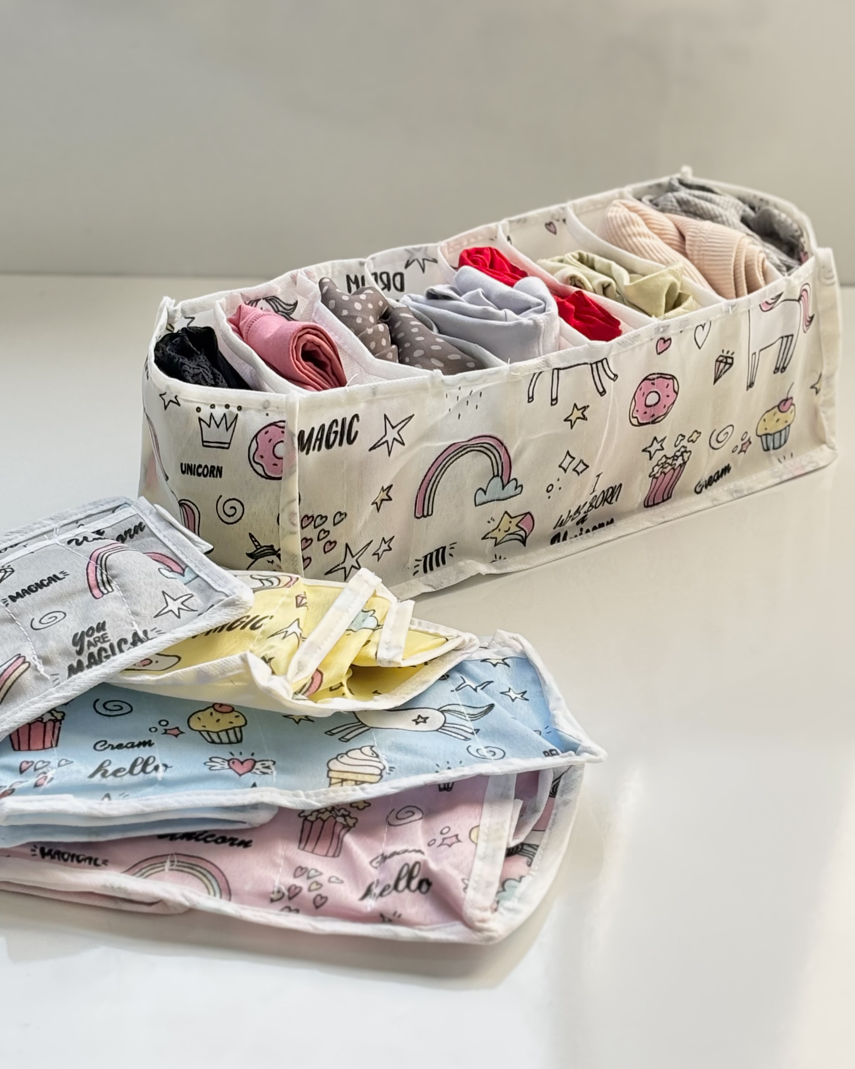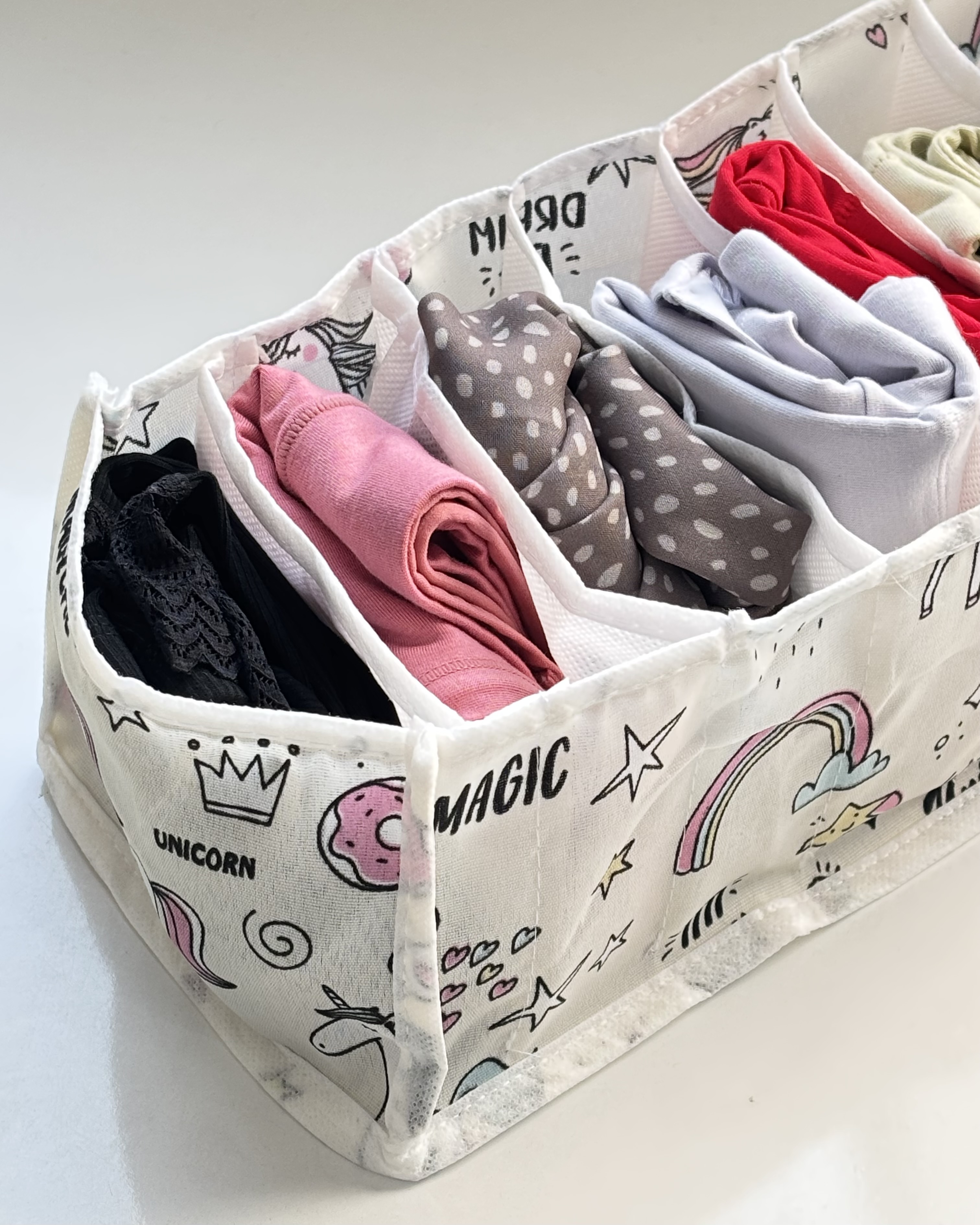 دارای 8 خانه می باشد که میتوانید شورت و جوراب و اکسسوری و غیره کودک خود را درون آن نظم دهید