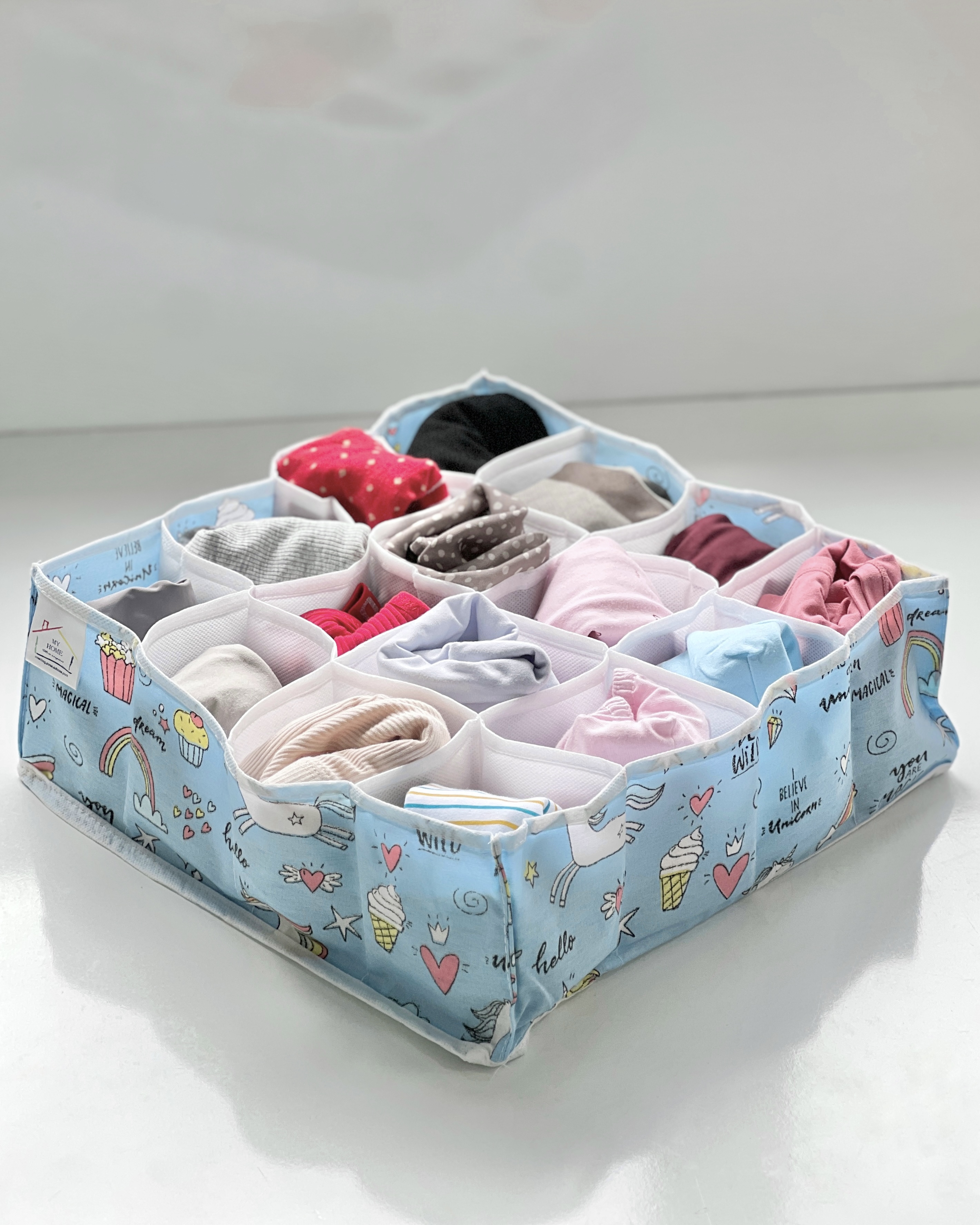 دارای 16 خانه می باشد که میتوانید شورت و جوراب و اکسسوری و غیره کودک خود را درون آن نظم دهید
