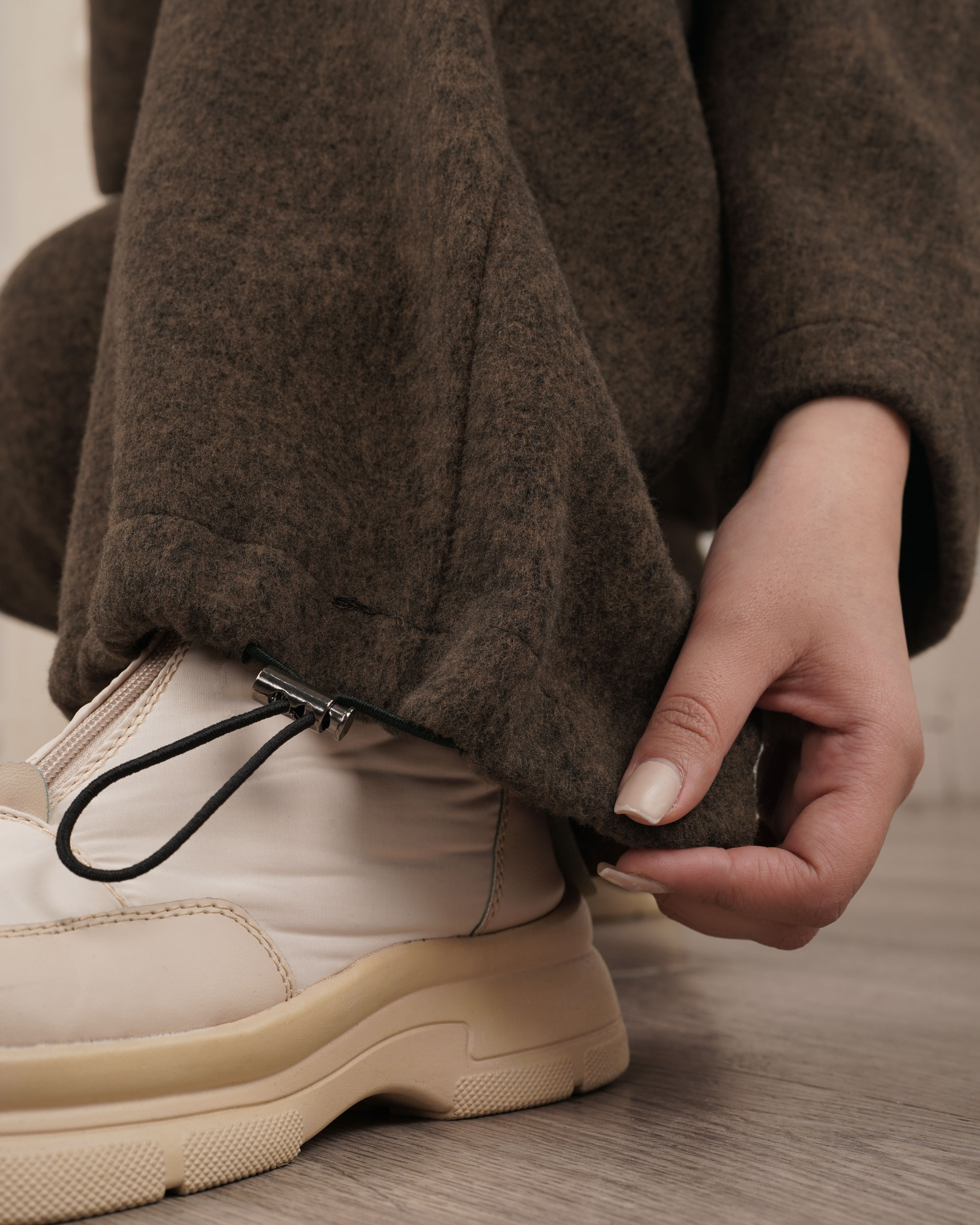 | سایز شلوار | دور کمر : در حالت عادی حدودا 58 سانتی متر با کشیدن حدودا 100 سانتی متر دور باسن : حدودا 112 سانتی متر دور ران : حدودا 68 سانتی متر قد فاق : حدودا 35 سانتی متر عرض دمپا : 28 سانتی متر قد شلوار : حدودا 102 سانتی متر |