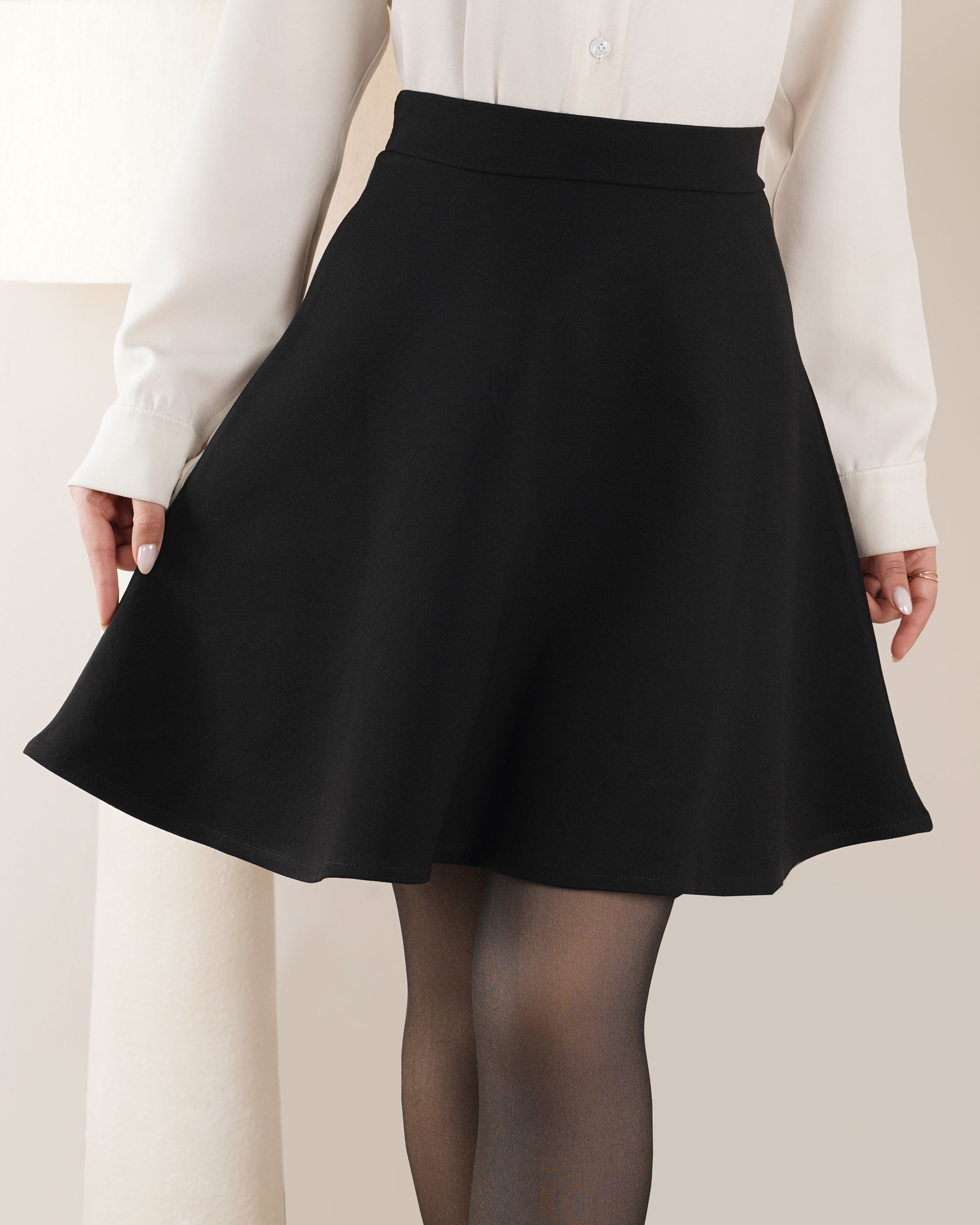 | سایز M | دور کمر : در حالت عادی 62 سانتی متر با کشیدن 80 سانتی متر دور باسن : حدودا 100 سانتی متر قد دامن : حدودا 49 سانتی متر |