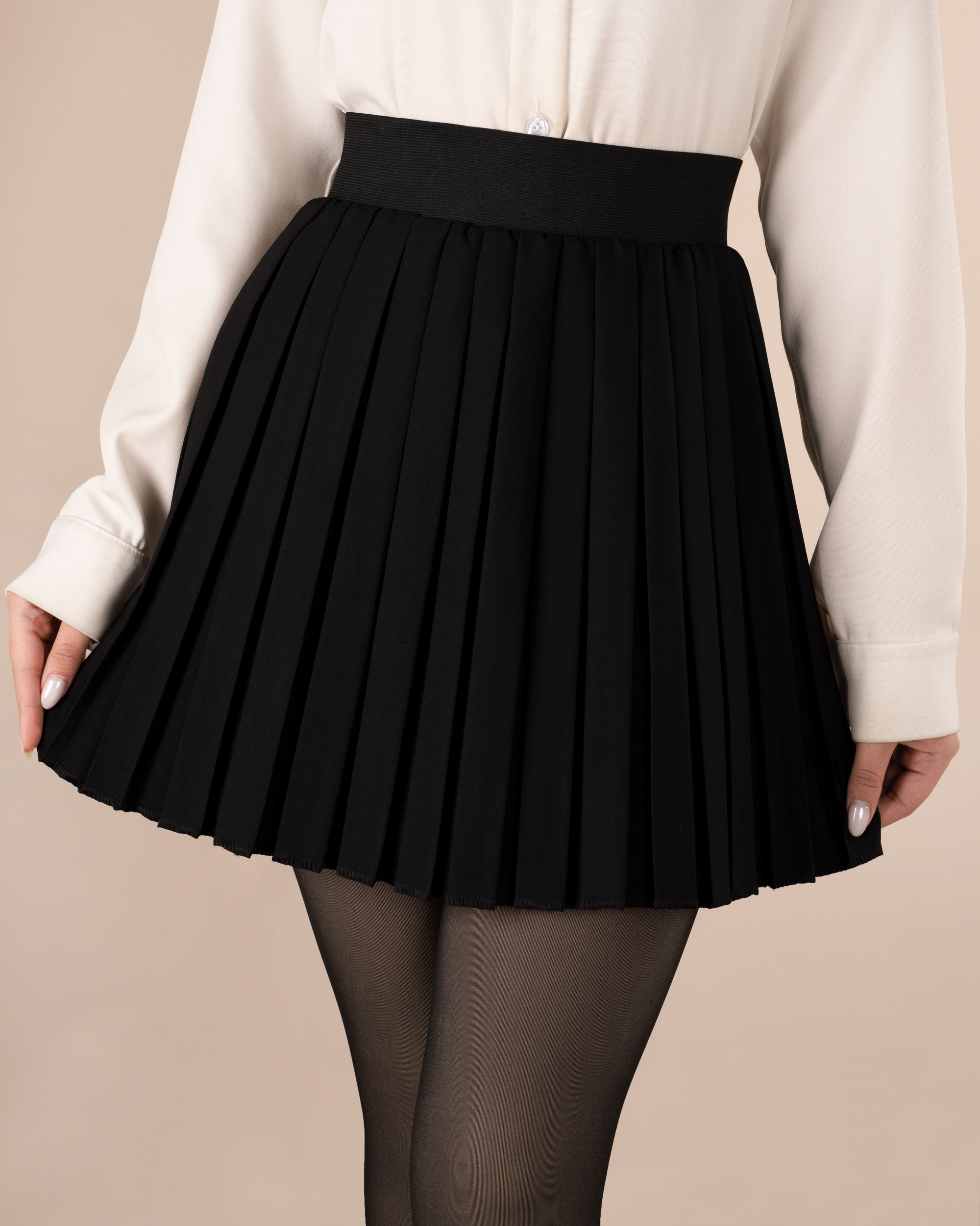 | تک سایز | دور کمر : در حالت عادی 62 سانتی متر با کشیدن 92 سانتی متر دور باسن : حدودا 102 سانتی متر قد دامن : حدودا 43 سانتی متر |