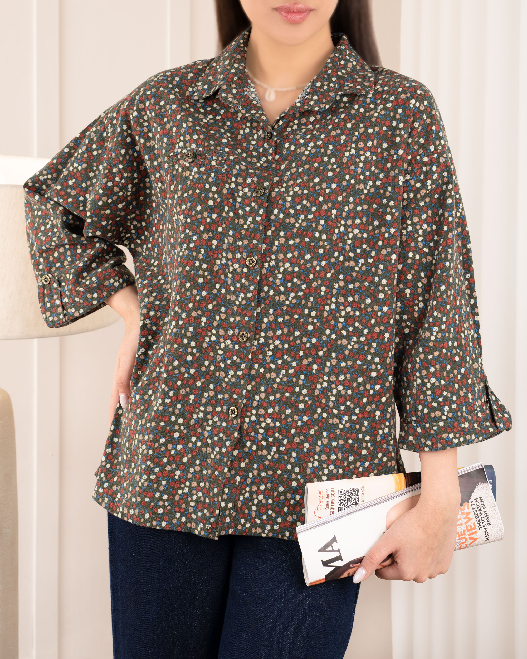 | تک سایز | دور سینه : حدودا 116 سانتی متر دور باسن : حدودا 118 سانتی متر دور بازو : حدودا 38 سانتی متر آستین : از کنار یقه حدودا 55 سانتی متر قد لباس : حدودا 68 سانتی متر |