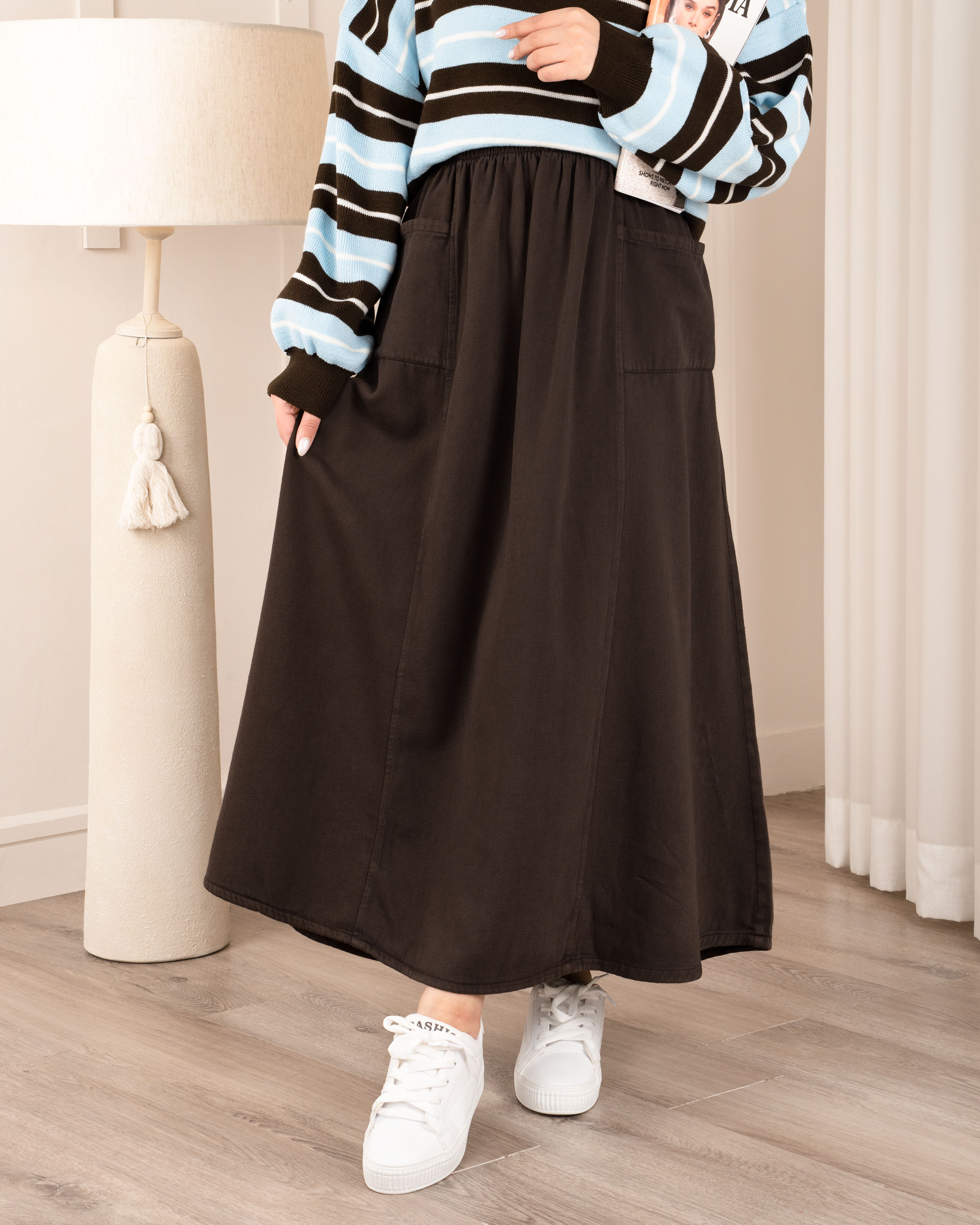 | تک سایز | دور کمر : در حالت عادی 48 سانتی متر با کشیدن 100 سانتی متر دور باسن : حدودا 140 سانتی متر قد دامن : حدودا 90 سانتی متر |