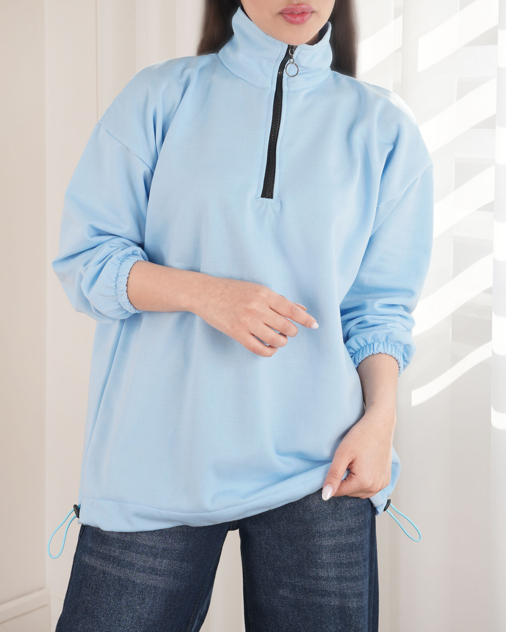 دورس نیم زیپ ساده آبی کد 27045