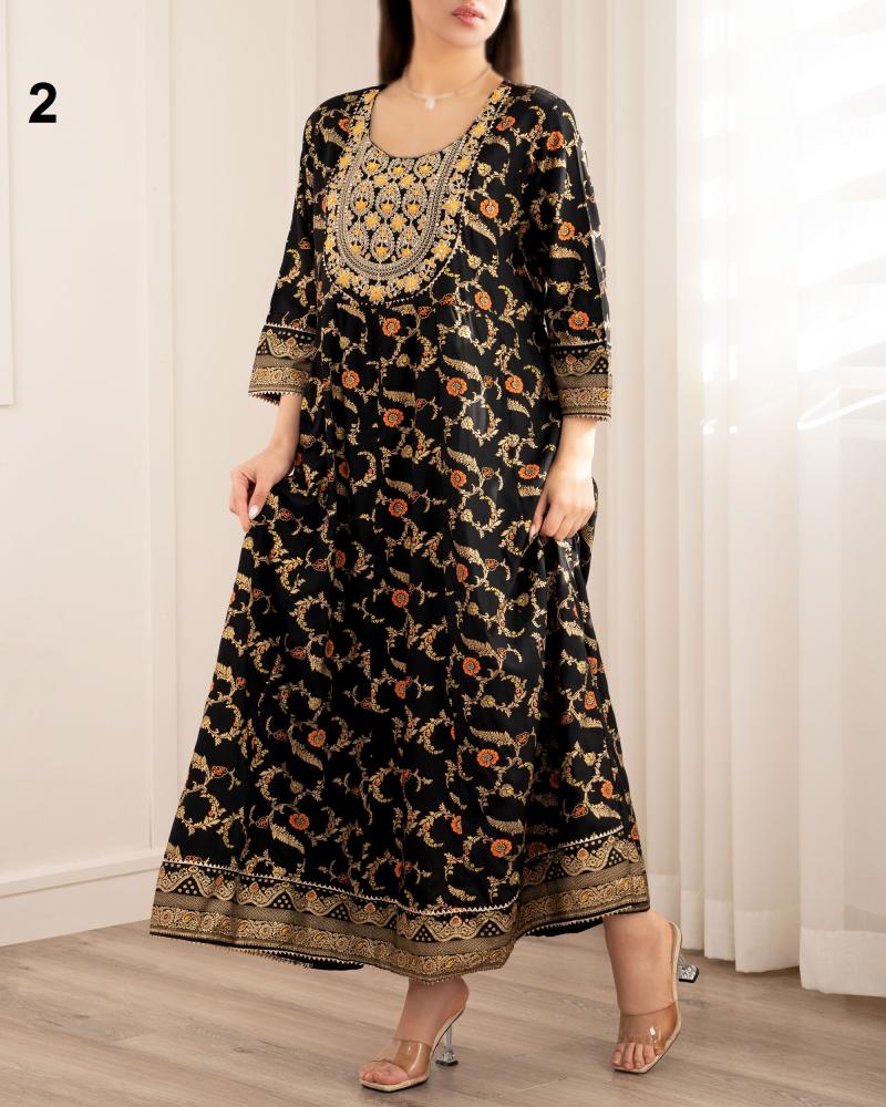 | سایز 3XL | دور سینه : حدودا 112 سانتی متر دور باسن : حدودا 136 سانتی متر دور کمر : حدودا 108 سانتی متر دور بازو : حدودا 40 سانتی متر آستین : از کنار یقه حدودا 53 سانتی متر قد لباس : حدودا 124 سانتی متر |