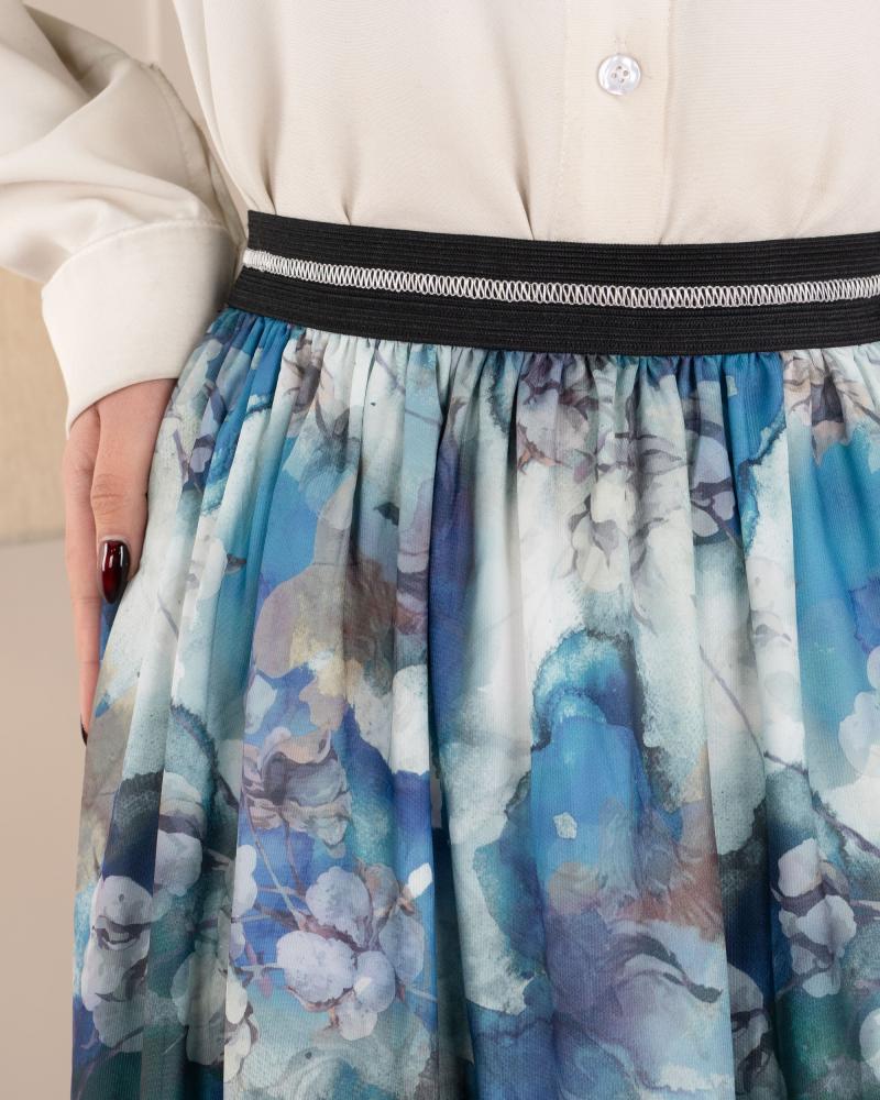 | تک سایز | دور کمر : در حالت عادی 60 سانتی متر با کشیدن 88 سانتی متر دور باسن : حدودا 108 سانتی متر قد دامن : حدودا 83 سانتی متر قد آستر دامن : حدودا 63 سانتی متر |