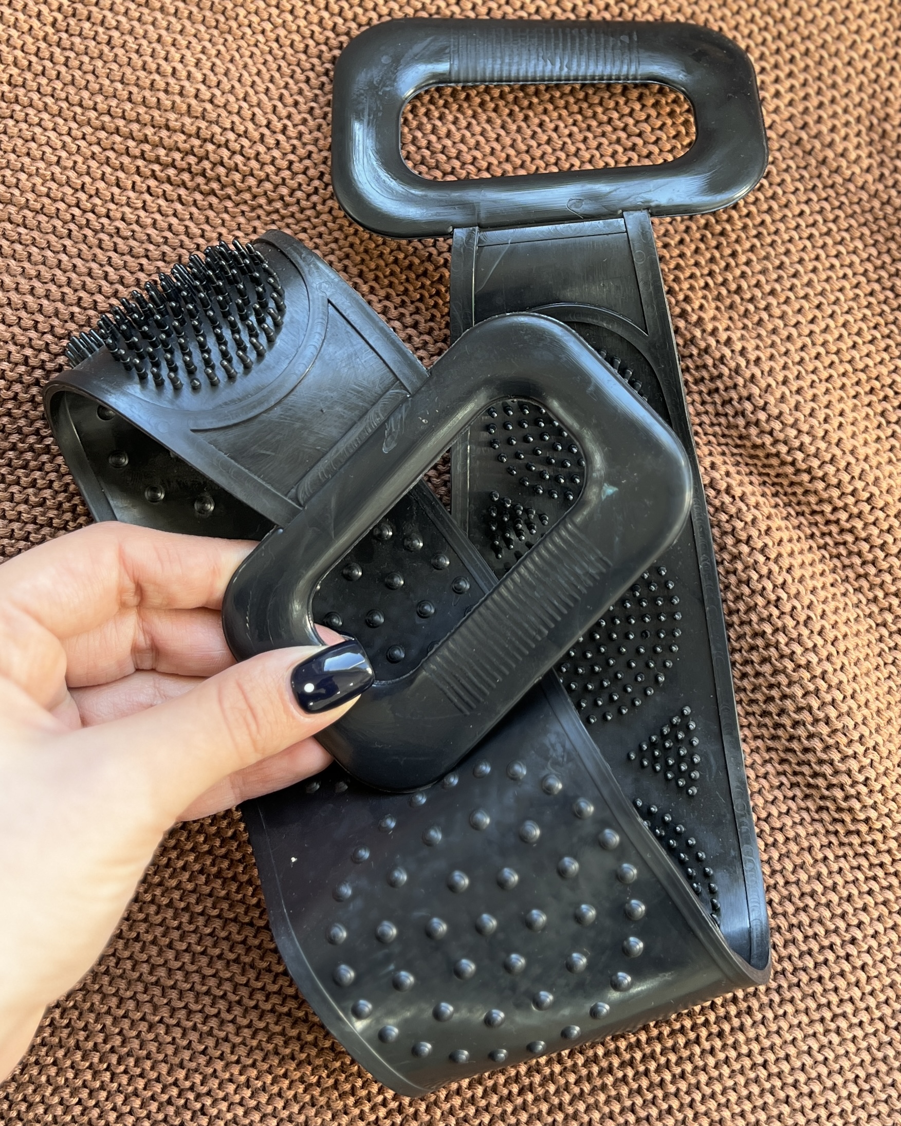لیف سیلیکونی بلند و دسته دار ابزار شستشوی بسیار کارآمد که برای تمیزی و ماساژ پوست بدن استفاده می‌شود. این لیف سیلیکونی دو طرفه دارای دو دسته برای استفاده آسان و راحت شستشوی تمام نقاط بدن می باشد.