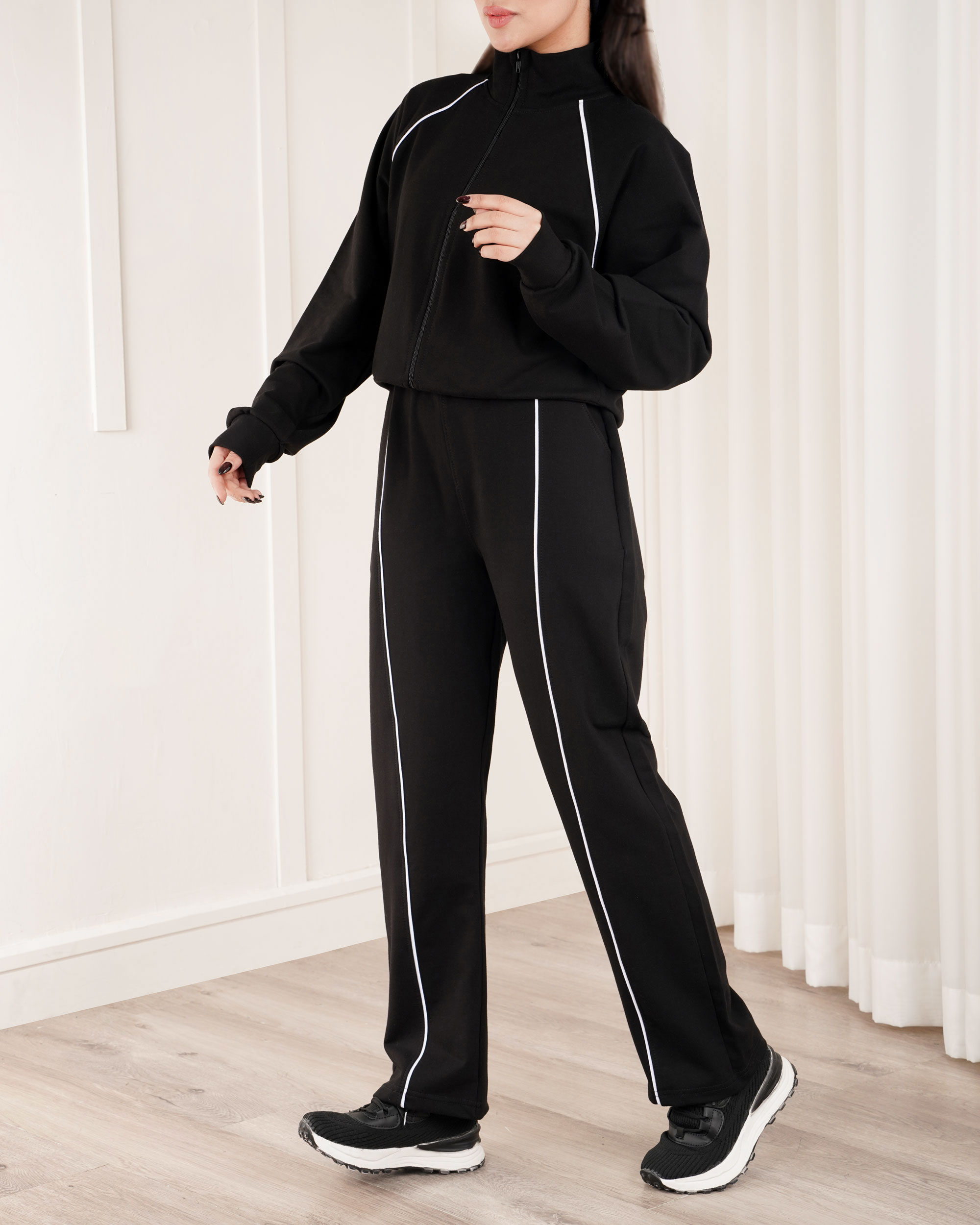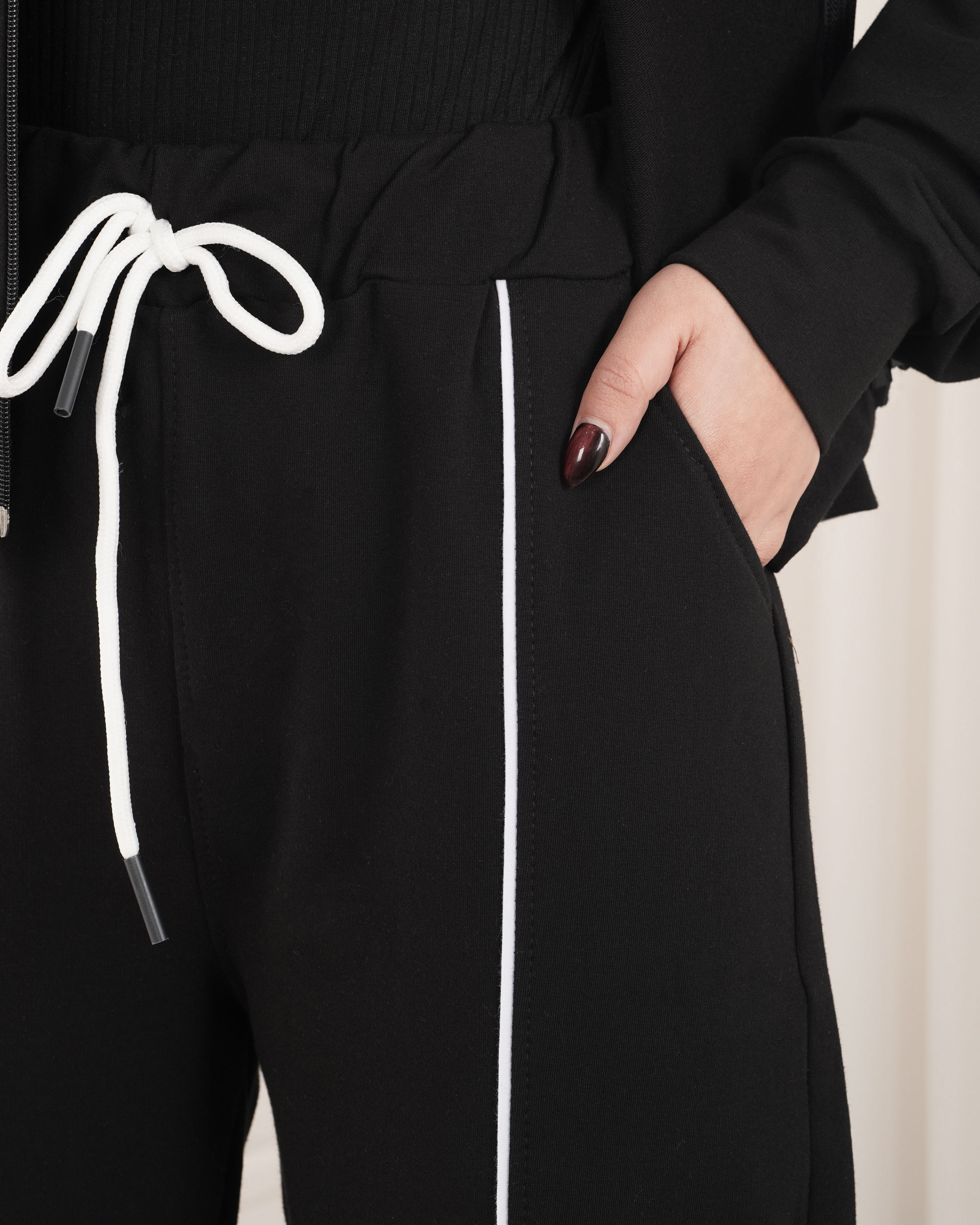 | سایز شلوار | دور کمر : در حالت عادی 62 سانتی متر با کشیدن 84 سانتی متر دور باسن : حدودا 100 سانتی متر دور ران : 60 سانتی متر فاق : 32 سانتی متر دمپا : 21 سانتی متر قد شلوار : حدودا 100 سانتی متر |