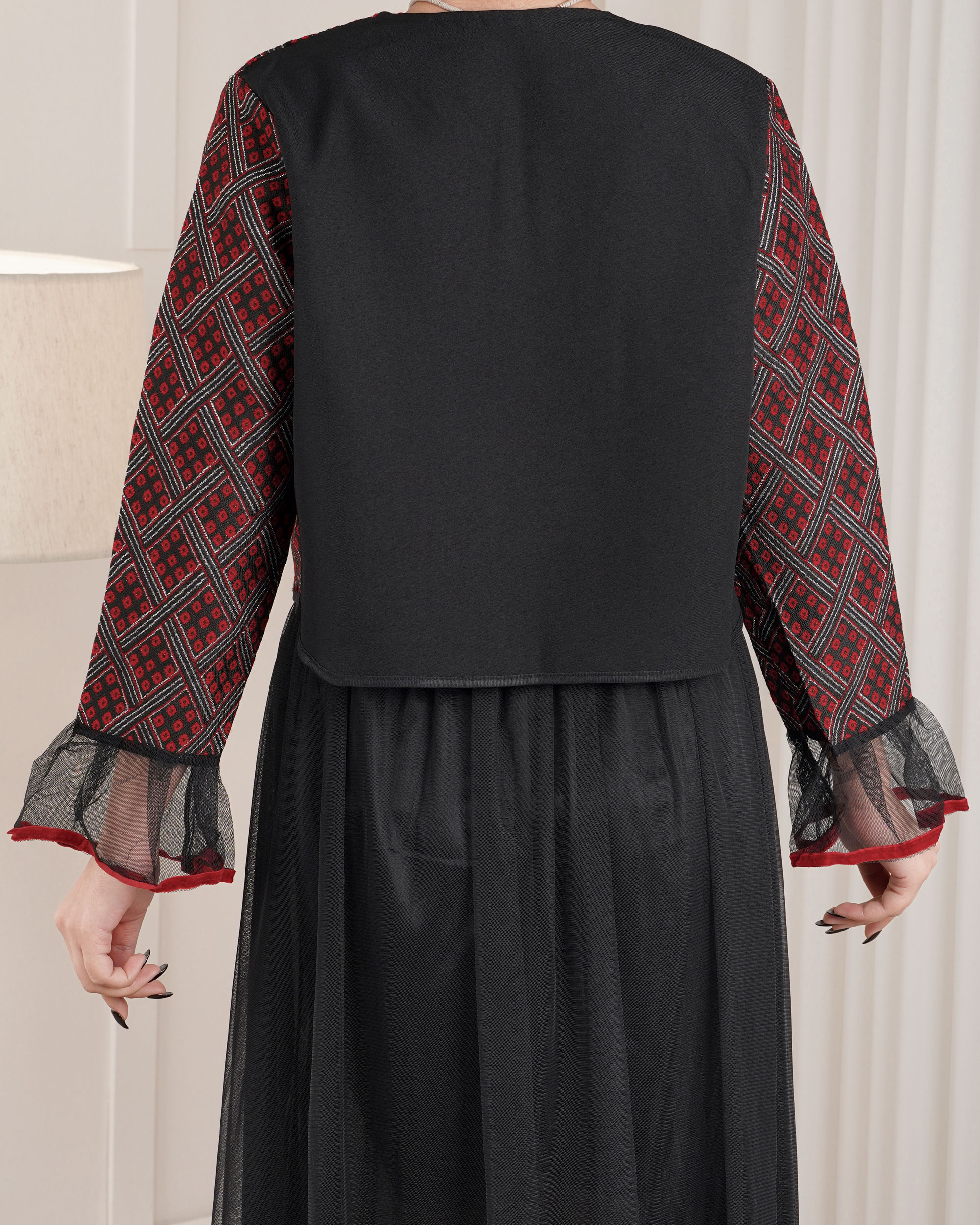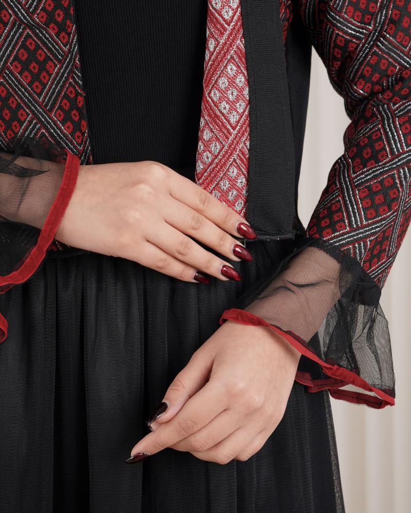 | تک سایز | دور سینه : حدودا 94 سانتی متر دور باسن : حدودا 94 سانتی متر دور بازو : حدودا 34 سانتی متر آستین : از کنار یقه حدودا 65 سانتی متر قد لباس : حدودا 43 سانتی متر |