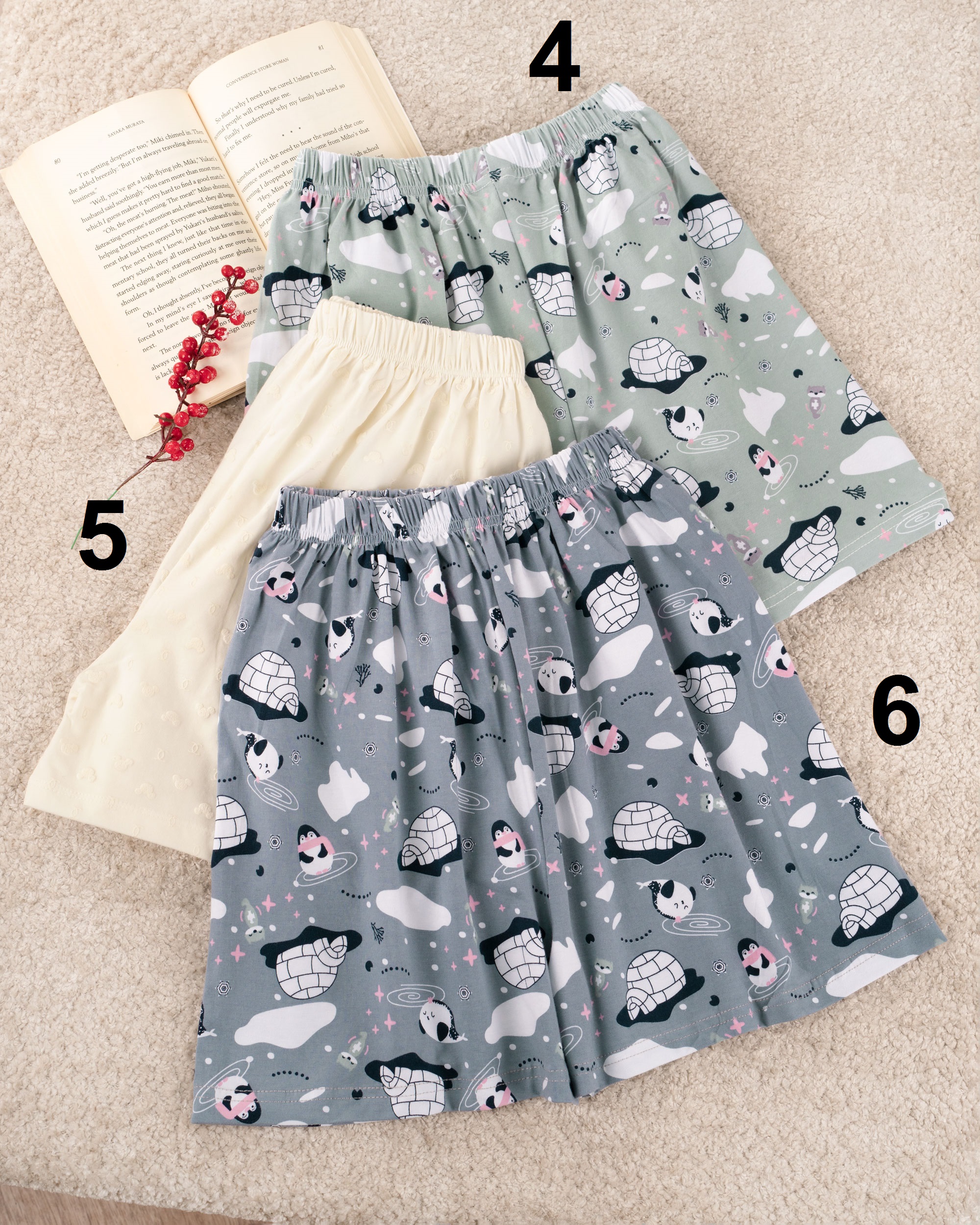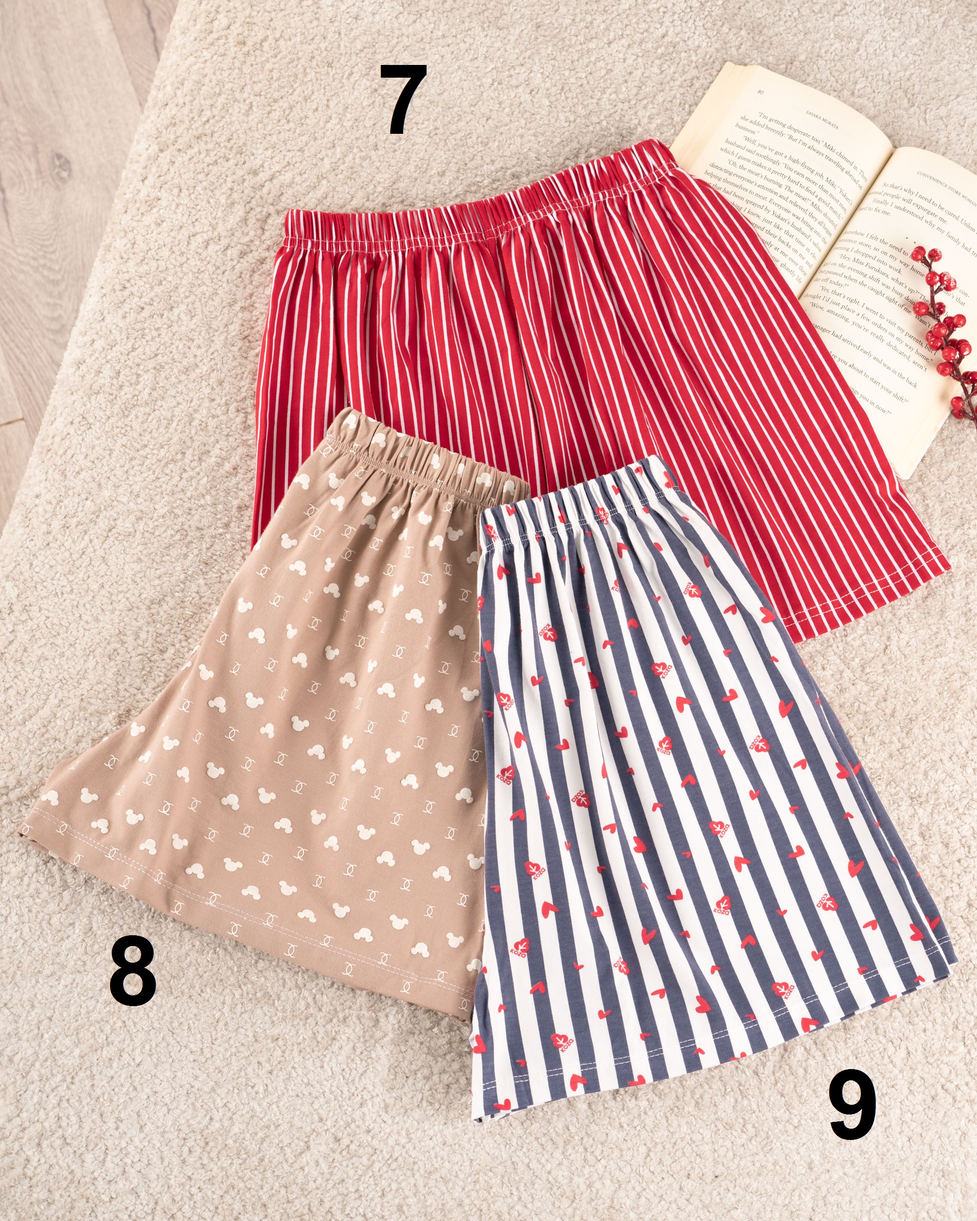 | سایز 5 | دور کمر : در حالت عادی 58 سانتی متر با کشیدن 102 سانتی متر دور باسن : 116 سانتی متر دور ران : 66 سانتی متر فاق : 32 سانتی متر قد شورتک : حدودا 37 سانتی متر |