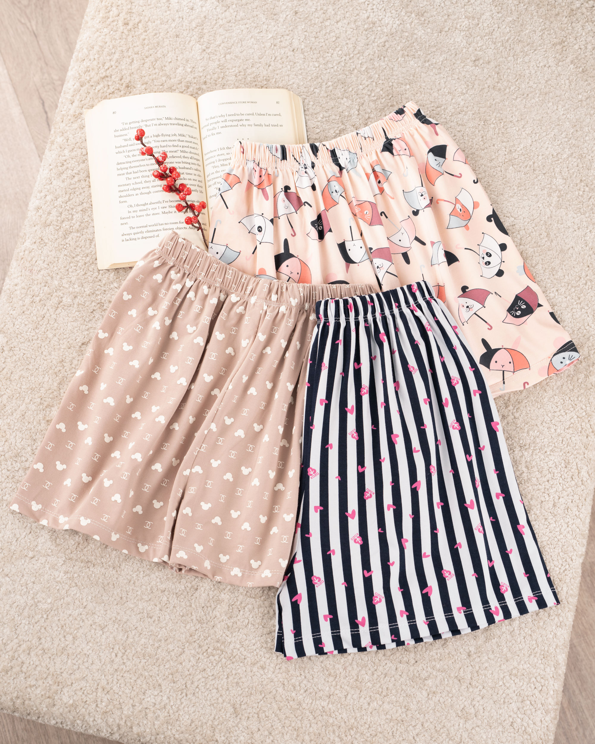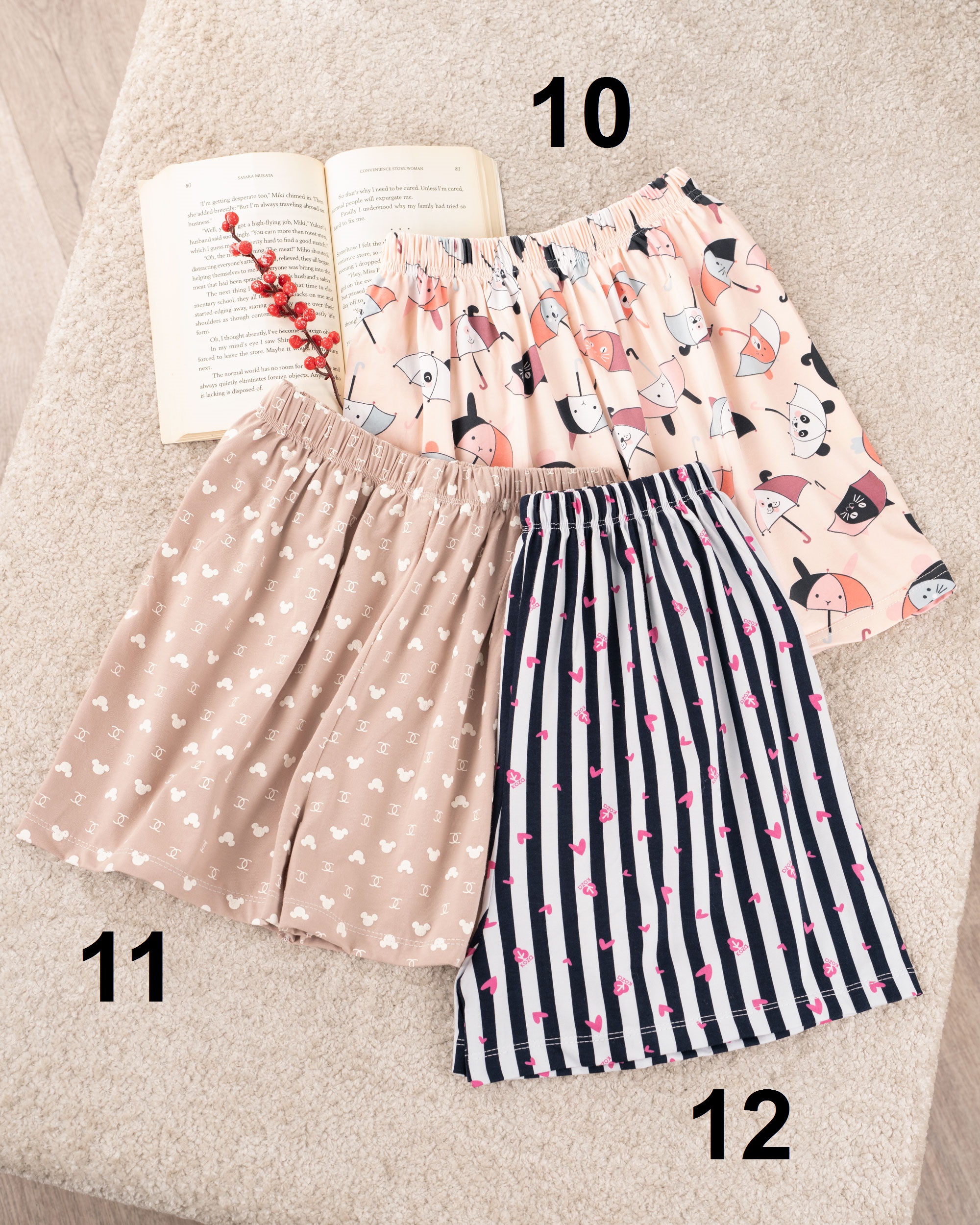 | سایز 4 | دور کمر : در حالت عادی 52 سانتی متر با کشیدن 92 سانتی متر دور باسن : 108 سانتی متر دور ران : 62 سانتی متر فاق : 32 سانتی متر قد شورتک : حدودا 37 سانتی متر |