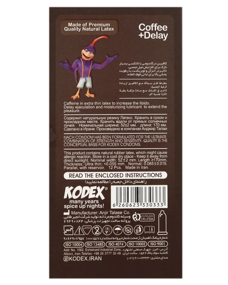 این محصول شامل 1بسته 12 عددی کاندوم مدل Coffee است.