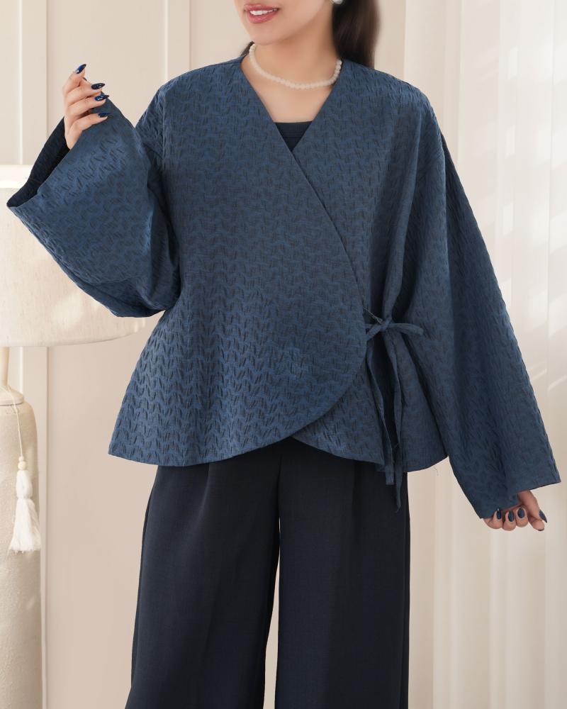 | تک سایز | دور سینه : حدودا 116 سانتی متر دور شکم : حدودا 122 سانتی متر دور بازو : حدودا 50 سانتی متر آستین : از کنار یقه حدودا 69 سانتی متر قد لباس : حدودا 57 سانتی متر |