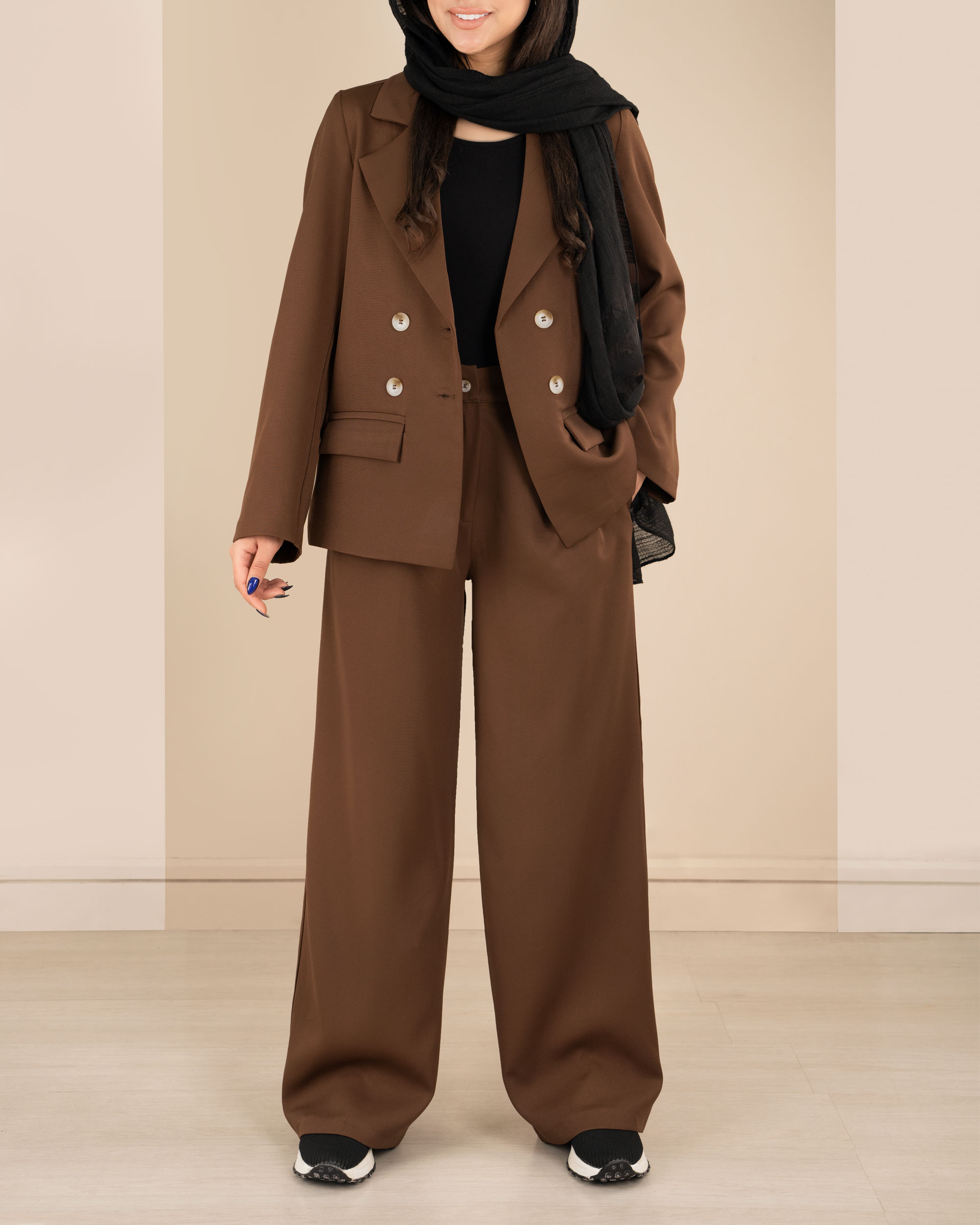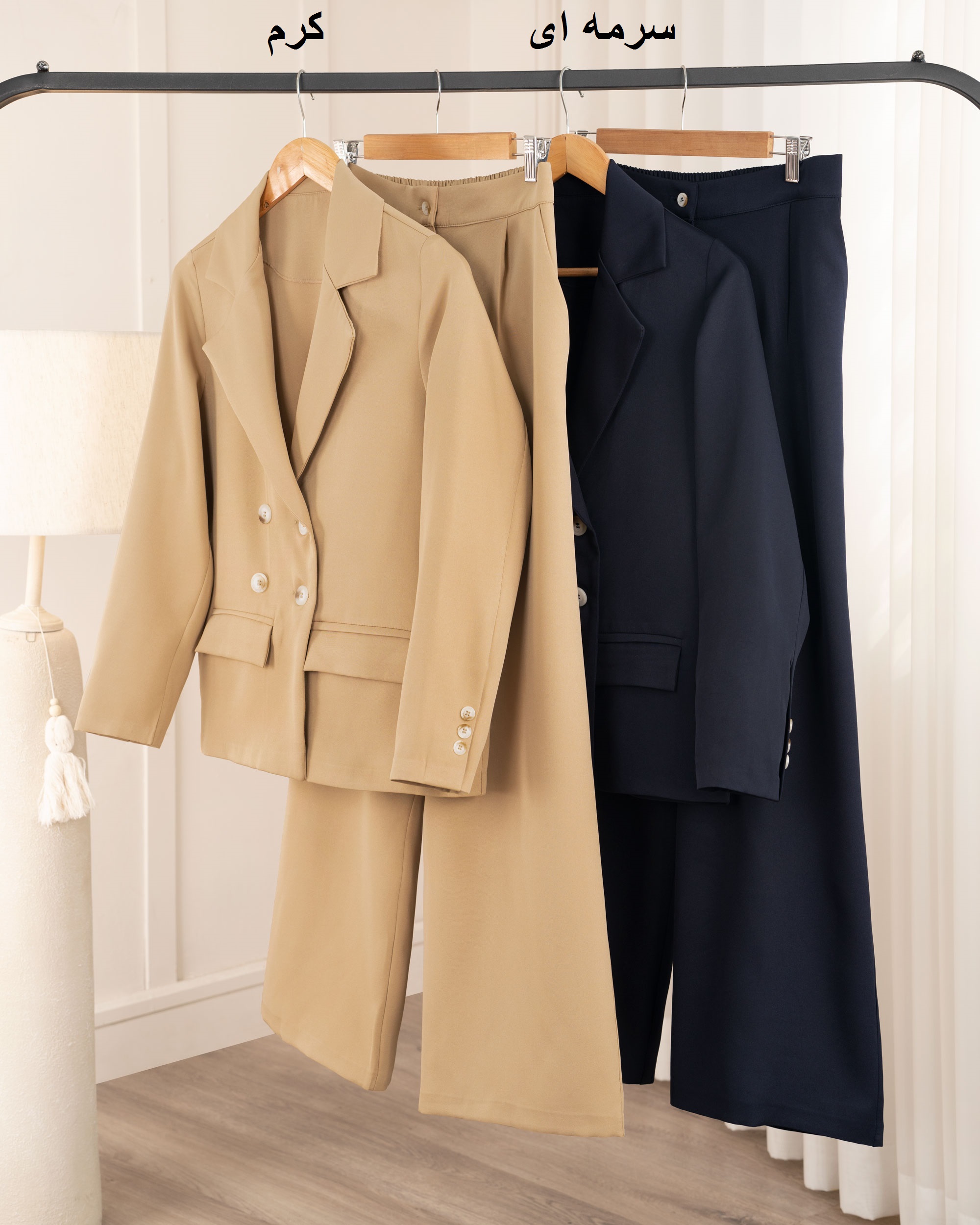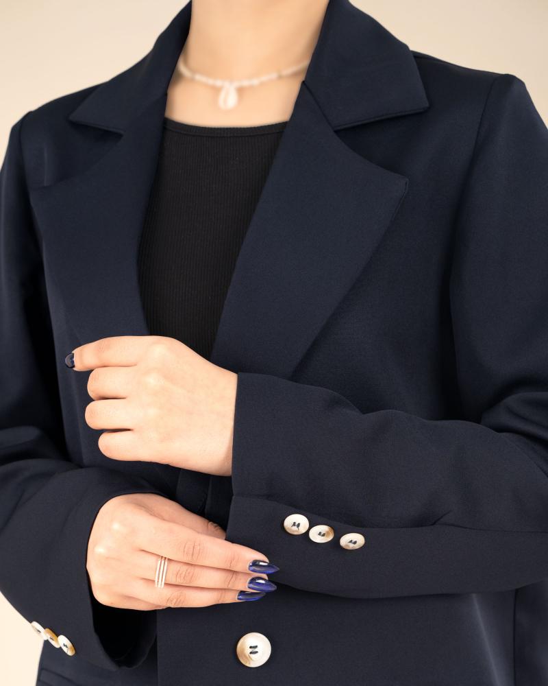 | سایز کت | دور سینه :حدودا 104 سانتی متر دور باسن : حدودا 104 سانتی متر سرشانه : 11 سانتی متر دور بازو : حدودا 36 سانتی متر آستین : حدودا 58 سانتی متر قد لباس : حدودا 63 سانتی متر |