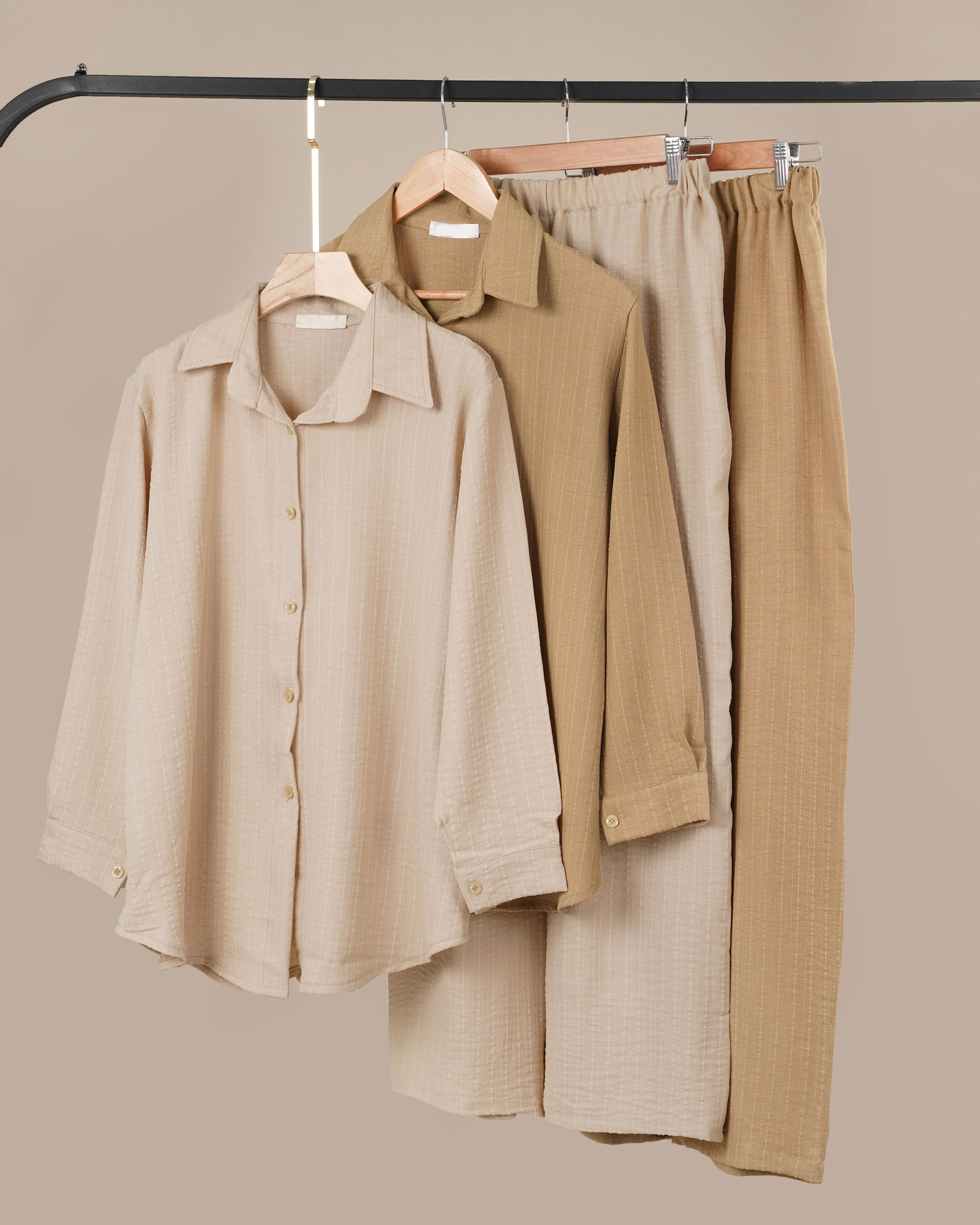 | سایز شومیز | دور سینه : حدودا 102 سانتی متر دور باسن : حدودا 102 سانتی متر سرشانه : 12 سانتی متر دور بازو : حدودا 38 سانتی متر قد آستین : حدودا 53 سانتی متر قد لباس : حدودا 68 سانتی متر |
