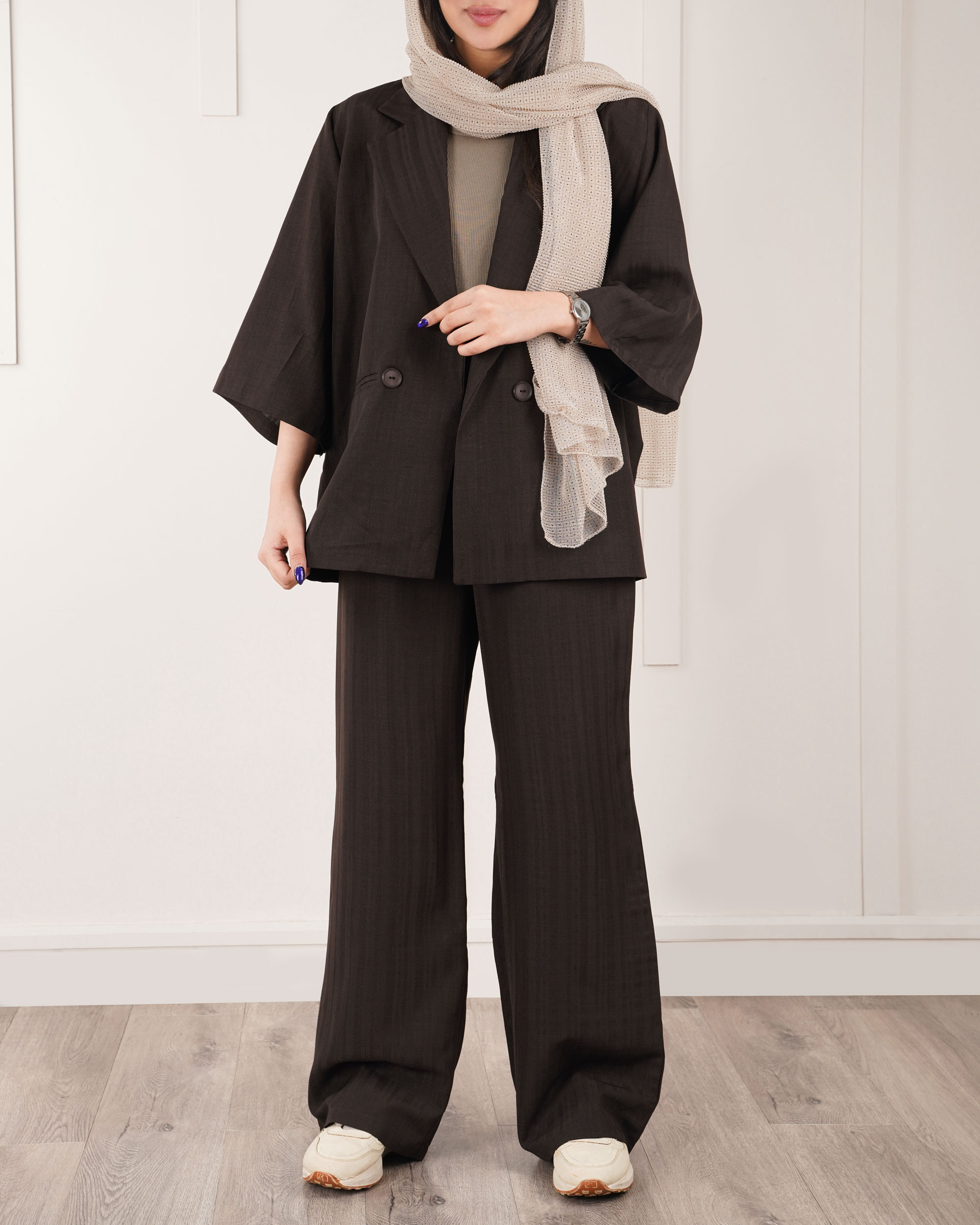 قد مدل 165 سانتی متر و سایز 38 است.