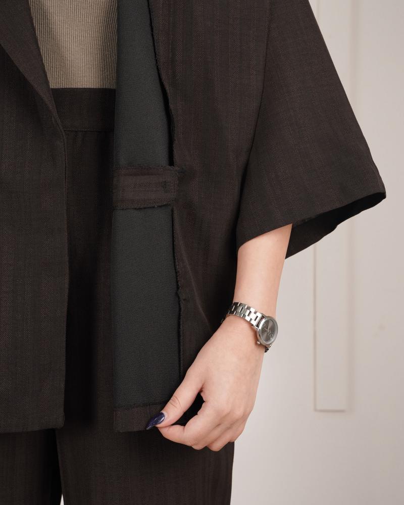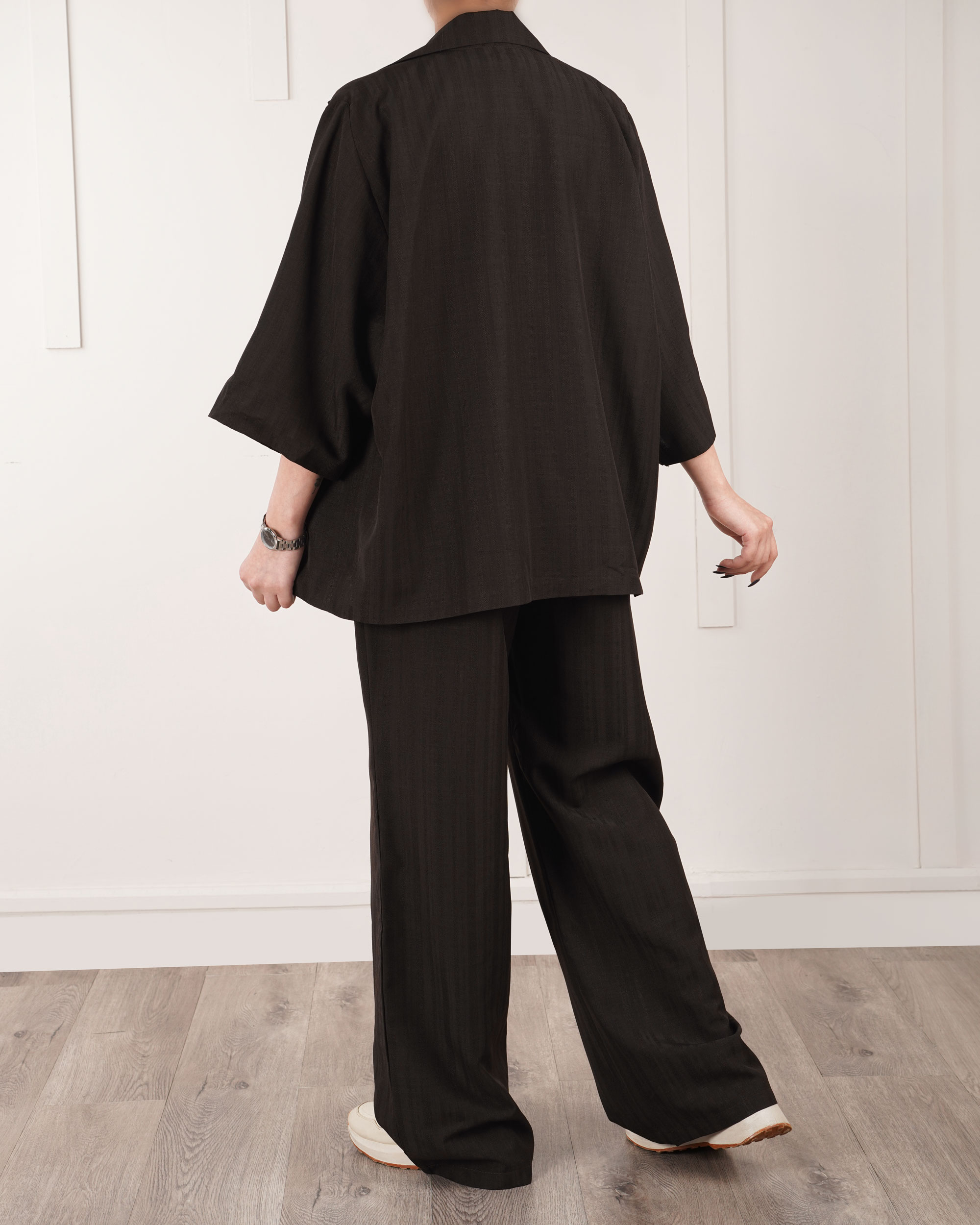| سایز کت | دور سینه : حدودا 130 سانتی متر دور شکم : حدودا 128 سانتی متر دور بازو : فری قد آستین : از کنار یقه حدودا 53 سانتی متر قد لباس : حدودا 64 سانتی متر |